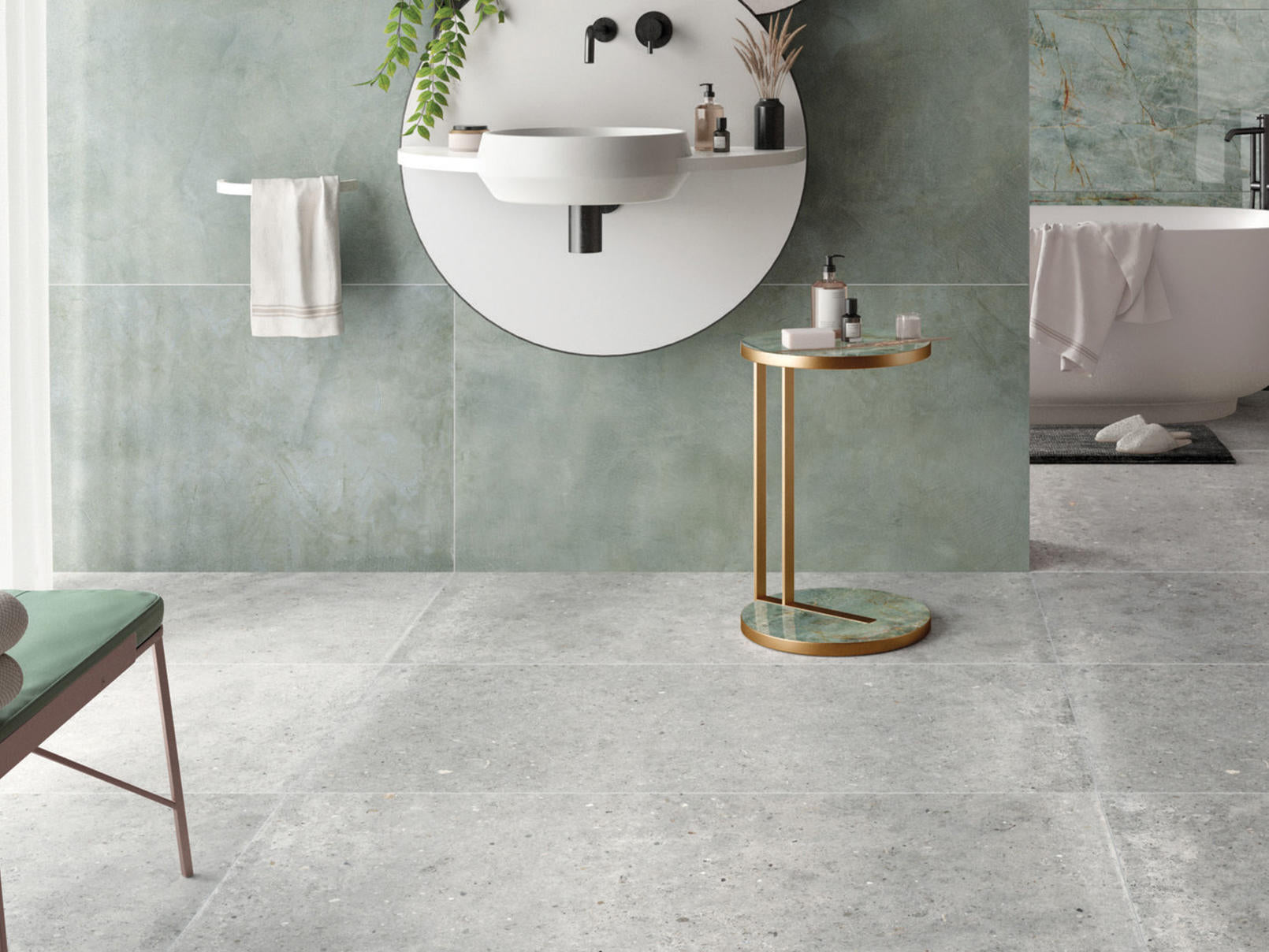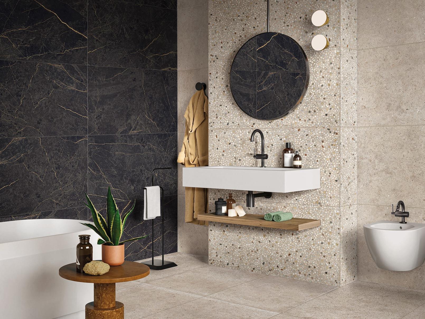 This rectified porcelain collection achieves a perfect balance between the natural look of stone and the industrial qualities of concrete. Its seemingly uniform limestone surface, dotted with small pebbles, makes it ideal for residential or commercial projects with a contemporary look. Available in four colors that reflect the stylistic sensibility of the shades and combination of materials, Anima is the perfect backdrop to enhance spaces large or small.