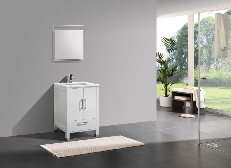 The Anziano Bathroom Vanity provides a contemporary design perfect for any bathroom remodel. There is ample storage in this free-standing vanity with chrome hardware accents. The pure white countertop it is made using nanotechnology, that makes it virtually impenetrable and maintenance free.