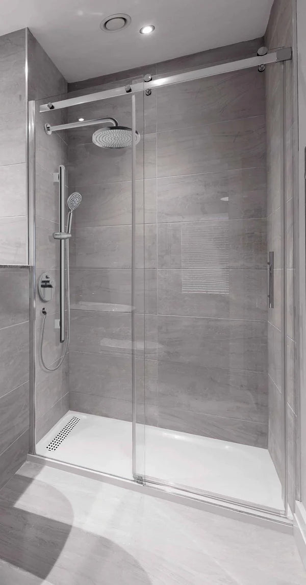 Complete your bathroom choosing a contemporary style shower. The sliding door is made of 8mm tempered glass and treated with Aquapel to ensure durability and ease of maintenance. The door has two large handles and high quality stainless steel hardware. For a corner shower door can be accompanied by a 32'' or 36'' return panel.