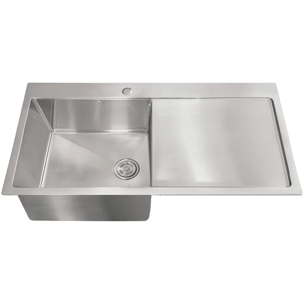 This rectangle single top mount kitchen sink is made of stainless steel with a built-in drainerboard. Easy to clean and hygienic, it stands up to your toughest kitchen tasks. The ELLA kitchen sink can be combined to the countertop faucet installation of your choice.