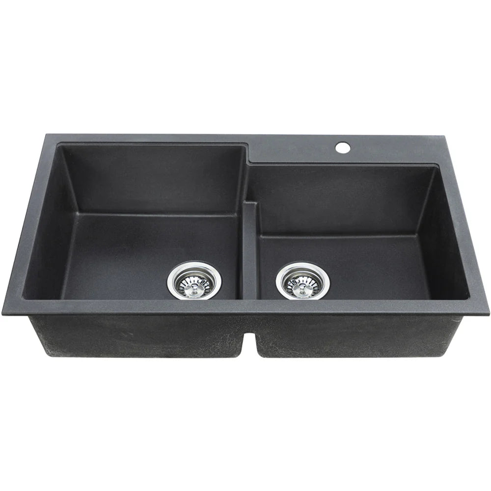 Our stylish granite lovers, here is a high quality sink made of 80% natural granite, the EMA matte black kitchen sink features a scratch-resistant, chip-resistant, stain-resistant and non-absorbent surface. A strainer, a fasteners and a cutting template is included.