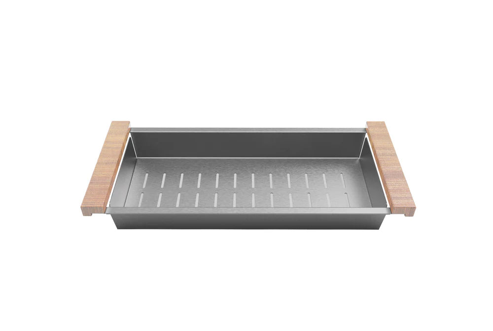 - Included in box: Basket strainer of 3-5/8’’, a drainer, roll-up dish drying rack, cutting board, fasteners and cutting template
