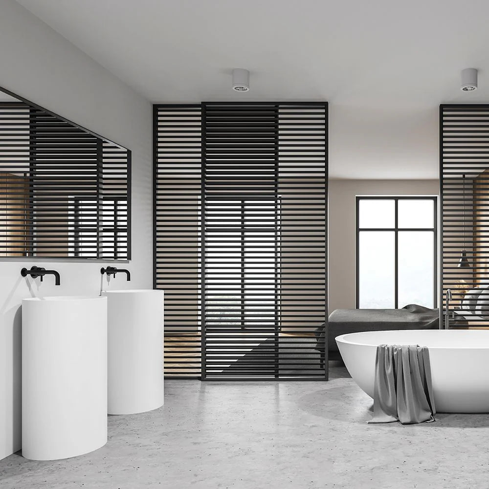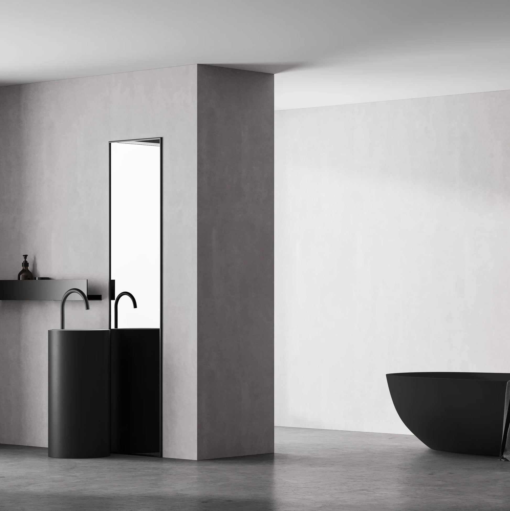 FLUVIA the pedestal washbasin is an elegant and modern sink of unparalleled sophistication that will be an ideal complement to your current bathroom or bathroom renovation project. The Solid surface is a composite material known for its robustness, lightness and non-porosity. Designed to last, it is easy to maintain and its color does not tarnish over time. The stone resin pedestal washbasin is a unique blend of clean and durable composition.