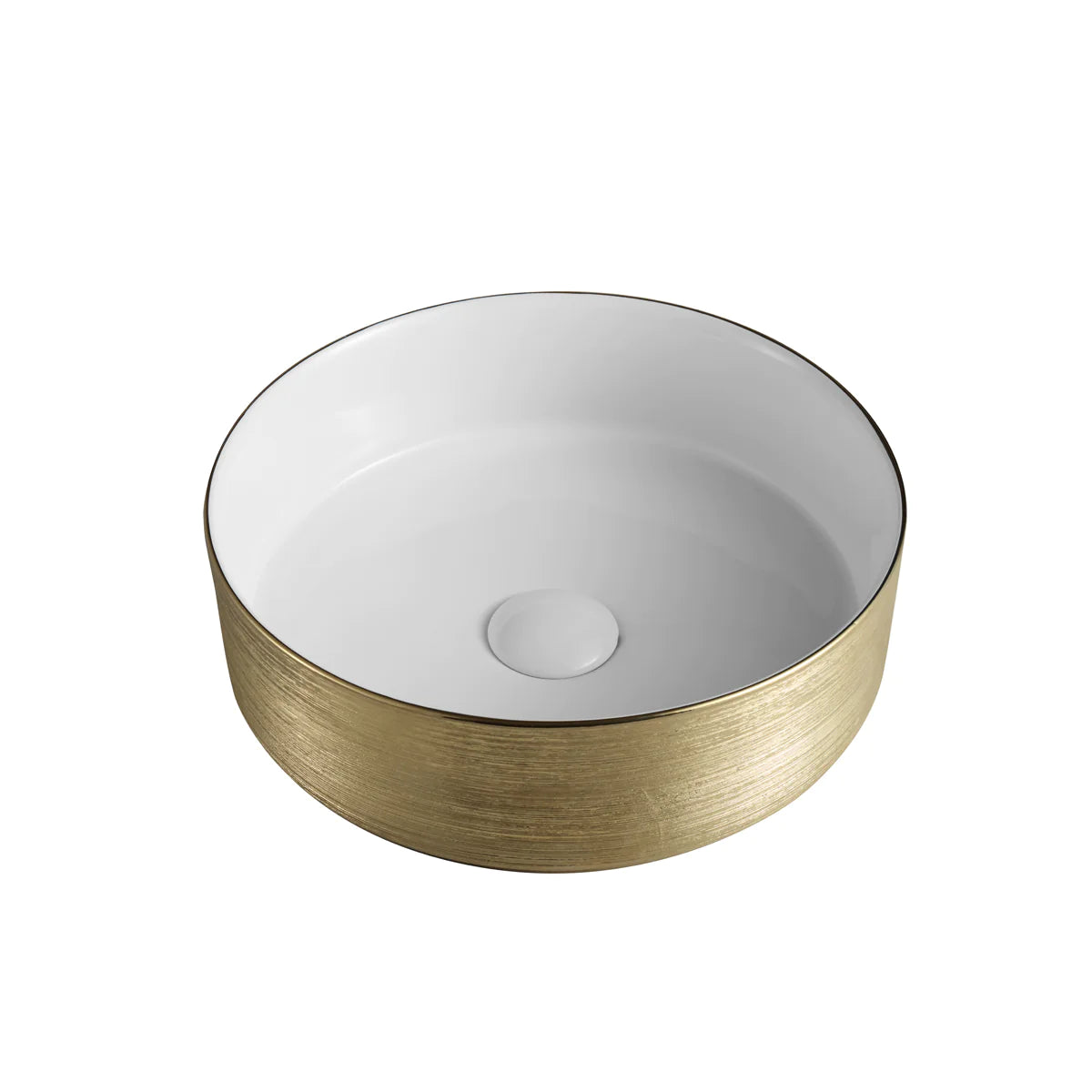 Made of porcelain, the above Gold basin is easy to clean and maintain, and its central hole ensures maximum water drainage. It fits perfectly in any bathroom and gives it a modern look. Our bathroom sinks are the perfect answer to your needs and allow you to bring your best bathroom design ideas to life.