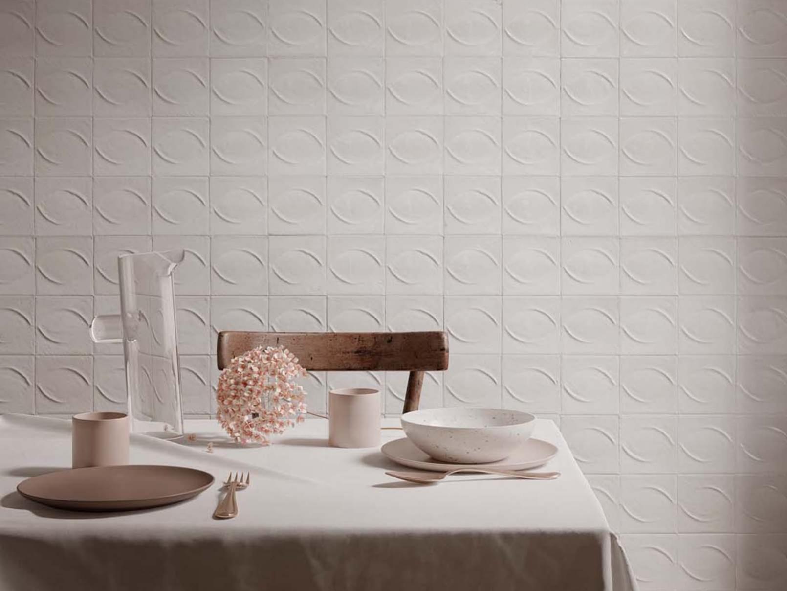 Hand-craftsmanship and ever-changing materials recall a ceramic tradition in which imperfection and defects are an added benefit. Clear shade transitions embellished with dripping rust and iron, irregularities typical of the artisan production process. Strong shading, chipping and relief imperfections give the collection an exclusive look to wrap spaces in a newfound naturalness.