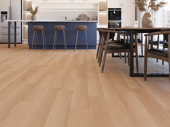 Each plank in the HydraSafe collection is now wider, delivering a more open and expansive feel to your living spaces. The natural wood tones and detailed grain patterns elevate the look of any room, offering both warmth and sophistication. With a variety colors with an embossed in register finish to choose from, HydraSafe complements a range of interior design styles.