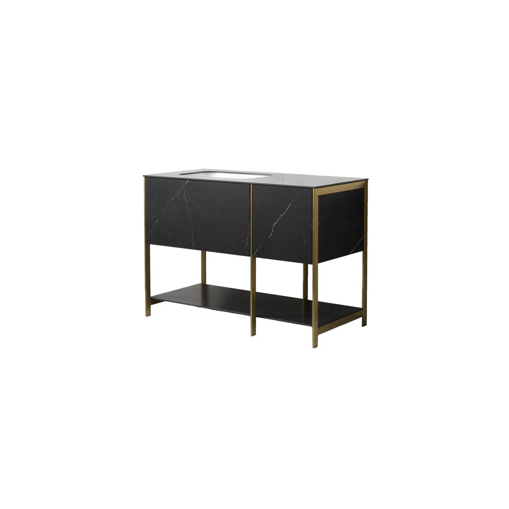 Highly refined, the ISIS vanity is highlighted by the black marble-effect porcelain tiles of its two drawers and countertop. Its gold-finish metal frame adds a touch of glamour to your bathroom. With plenty of storage space, you'll be able to easily dispose of your personal belongings.