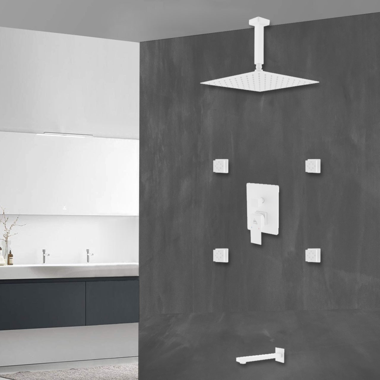 Rain Shower Head with Tub Filler and Massage Body Jets