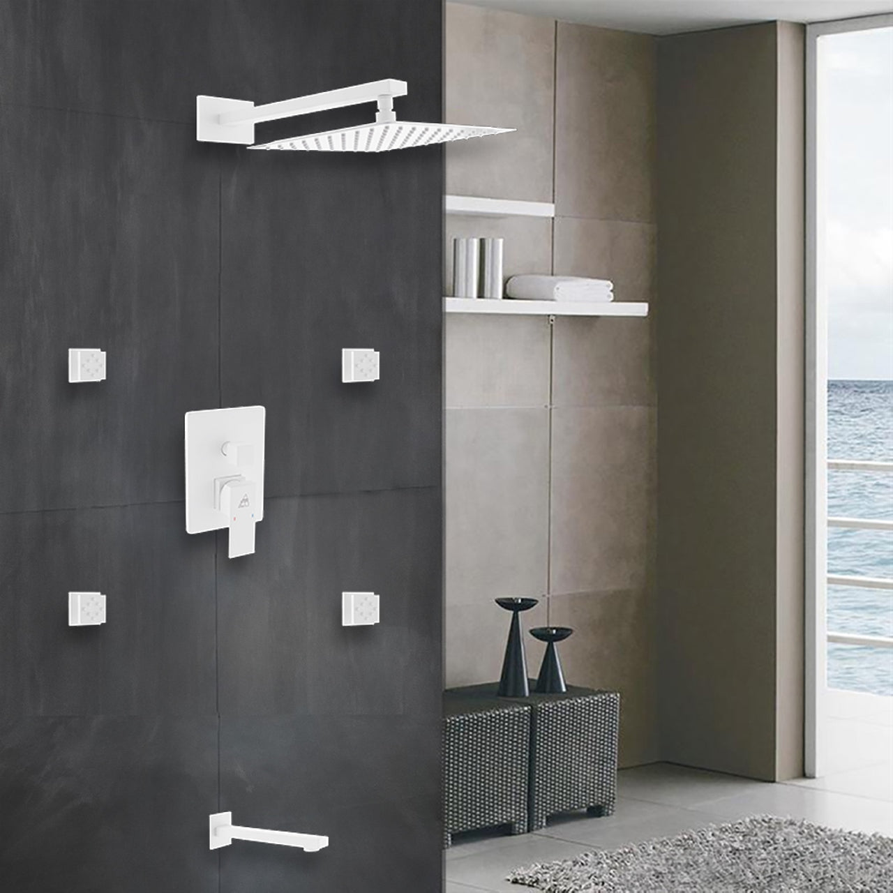 Rain Shower Head with Tub Filler and Massage Body Jets