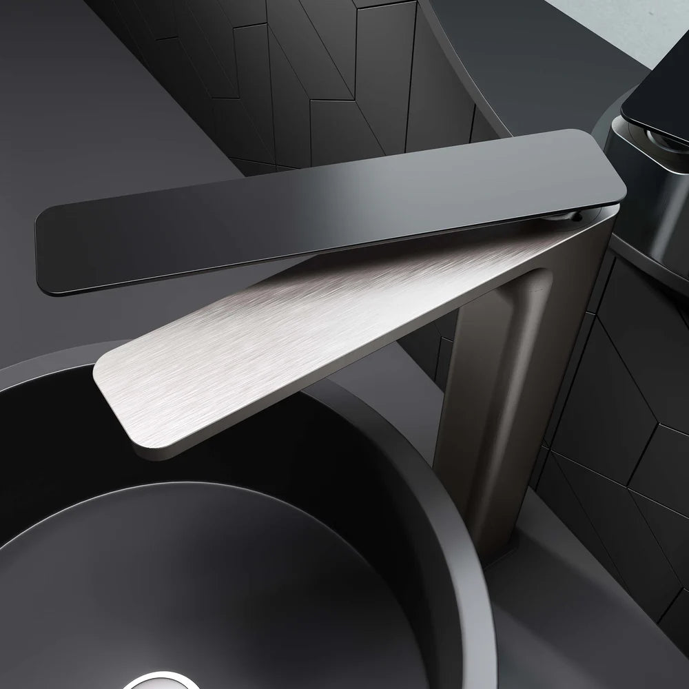 The color combination and the unique design evokes a futuristic and modern style. The discreet single handle facilitates temperature and flow control as well as creating a unique and cleaner look. This faucet will certainly make a statement in any bathroom!