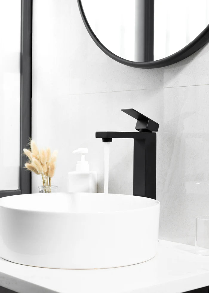 Add a beautiful accent to your bathroom with this square lavatory faucet. The single handle facilitates temperature and flow control as well as creating a unique and cleaner look. Thanks to the sold brass body and the ceramic cartridge, the durability of the product is ensured.