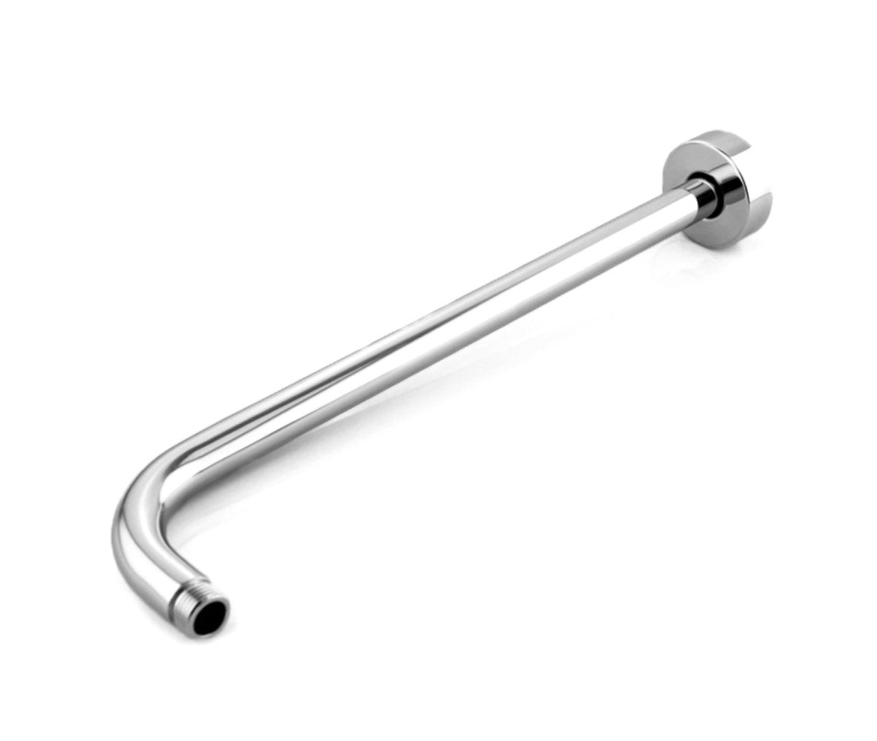 - Tubular 17″ Long Wall Mount Shower Arm w/ Wall Cover Plate.