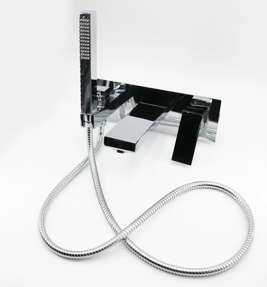 Square shape and elegant, this wall mounted bathub faucet is ideal for modern or classic style bahtrooms. Its unique handle facilitates temperature control and its hand shower will be a real ally for rinsing. This faucet will certainly be an excellent addition to your bathroom!