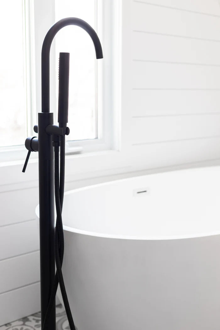 Enhance the style of your bathroom with this stylish freestanding tub faucet! Its unique handle facilitates temperature control and its hand shower will be a real ally for rinsing. Its solid brass construction and ceramic cartridge ensure great durability.