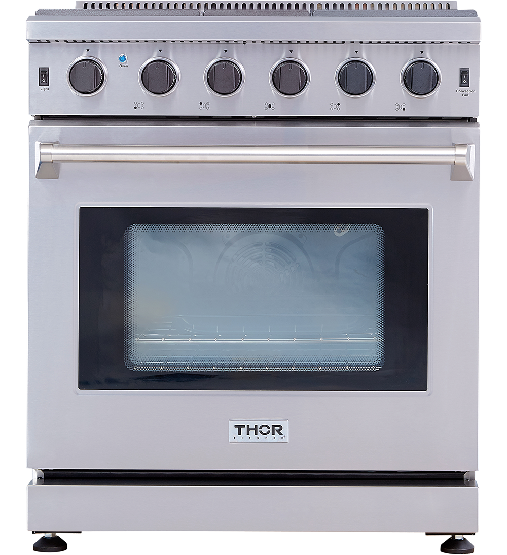 THOR Kitchen offers the power and performance of a premium professional appliance at a practical price. The THOR Kitchen 30 Inch Gas Range is a stainless steel machine designed with professional features and functionality. With powerful burners, continuous grates and a commercial convection fan, this range takes everything from prime rib to snickerdoodles to the next level. #cooklikeagod