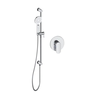 • Complete shower set with hand shower, rail, trim, and valve - everything you need in one